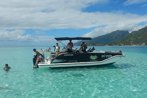Partez à la découverte du lagon de Moorea en groupe ou en privée, et découvrez les raies, les requins pointes noires, les baleines (seulement de juillet à novembre)...